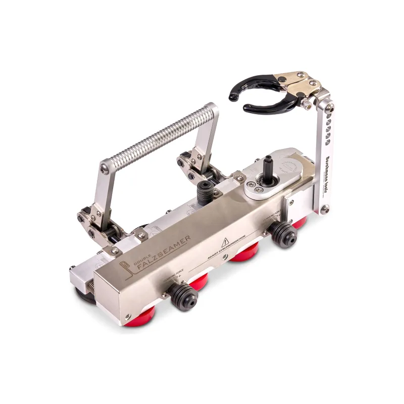 ACCUSEAMER to idealne urządzenie przenośne zapewniające doskonałość i bezproblemowe zamykanie połączenia blach w pojedynczych i podwójnych rąbkach stojących w jednym kroku.