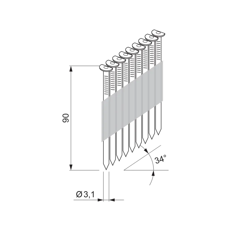 Gwoździe gładkie przeznaczone do gwoździarki gazowej na gwóźdź 90 mm z oznaczeniem KMR D34/90-G641E.