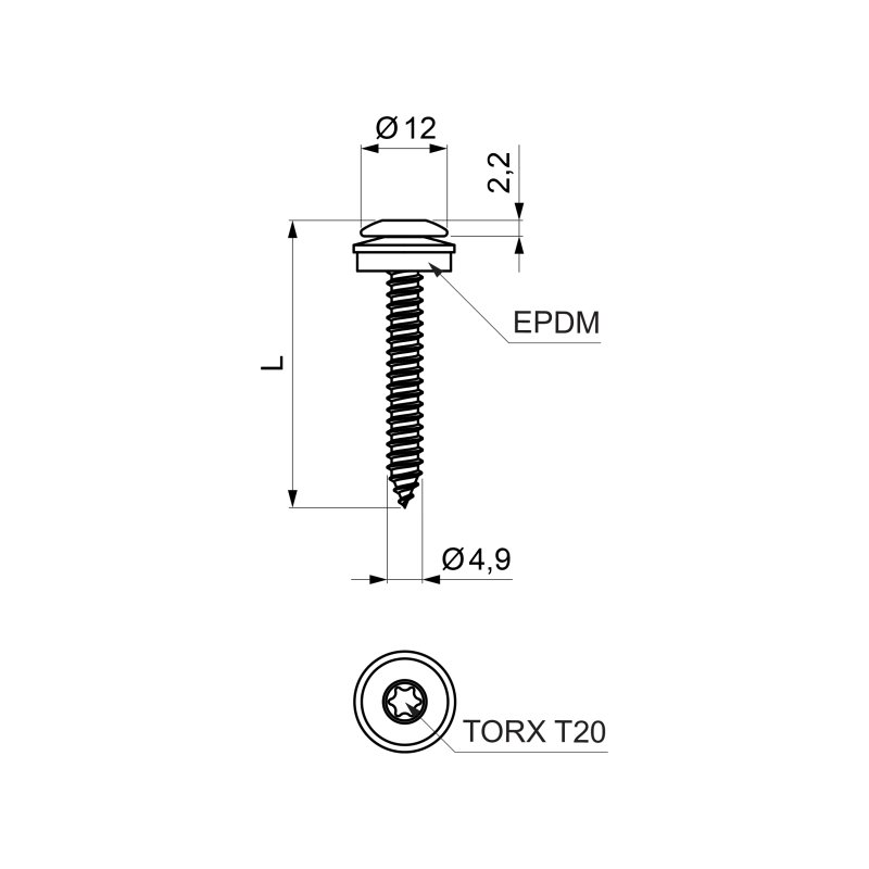 Wkręt samogwintujący ze stali nierdzewnej z łbem soczewkowym do mocowania profili metalowych do drewnianych lub aluminiowych konstrukcji nośnych o grubości ≤ 2 mm.