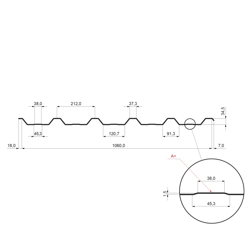 Trapez dachowy z przetłoczeniem TR 35A+