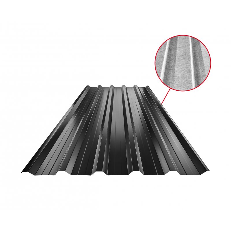 Zawiera element SQ zapobiegający powstawaniu kondensatów oraz wyścielono go ze spodu filcem przeciwdźwiękowym, co zwiększa komfort. Tłumi hałas dobiegający z otoczenia i zapobiega rozprzestrzenianiu się skroplonej wody na powierzchni dachów.