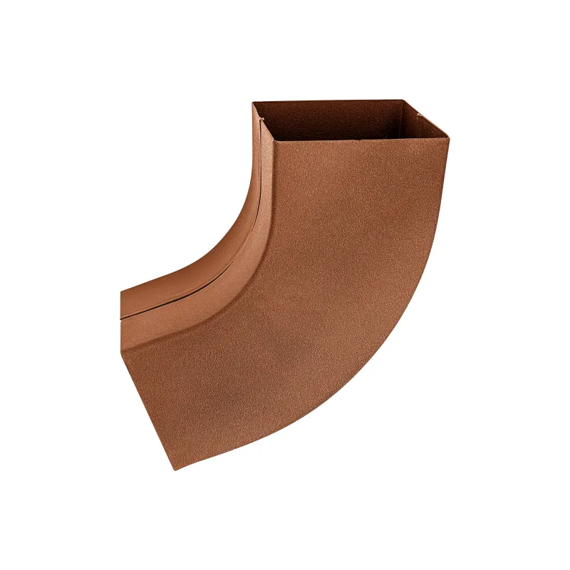 Przy realizacji odprowadzeń wody deszczowej kwadratowego systemu okapowego należy brać pod uwagę możliwość dostosowywania kolan odprowadzających do wymaganego kąta ich skrętu. Dysponujemy większą liczbą wersji kolan i systemów odprowadzających.