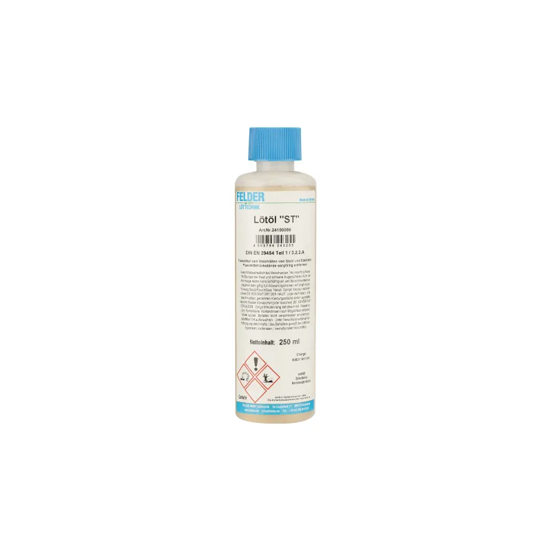 Płyn do lutowania miękkiego wyrobów ze stali i stali nierdzewnej KJG. Na bazie cynku, chlorku amonu i kwasu solnego w rozcieńczonym roztworze.